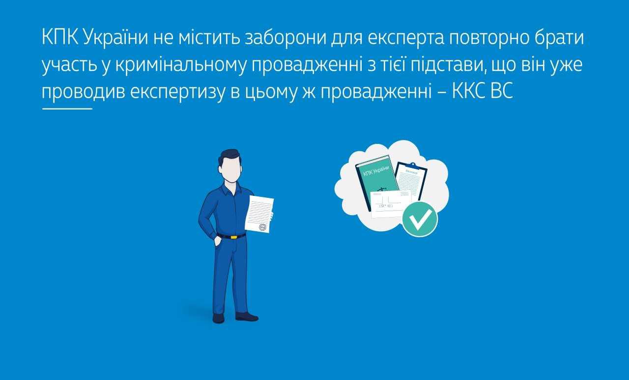 🔹ККС ВС: КПК України не містить заборони для експерта повторно брати участь у кримінальному провадженні з тієї підстави, що він уже проводив експертизу в цьому ж провадженні