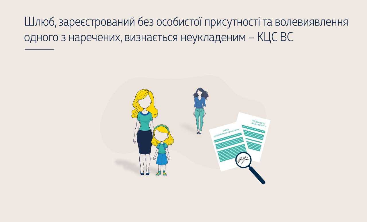 Шлюб, зареєстрований без особистої присутності та волевиявлення одного з наречених, визнається неукладеним – КЦС ВС