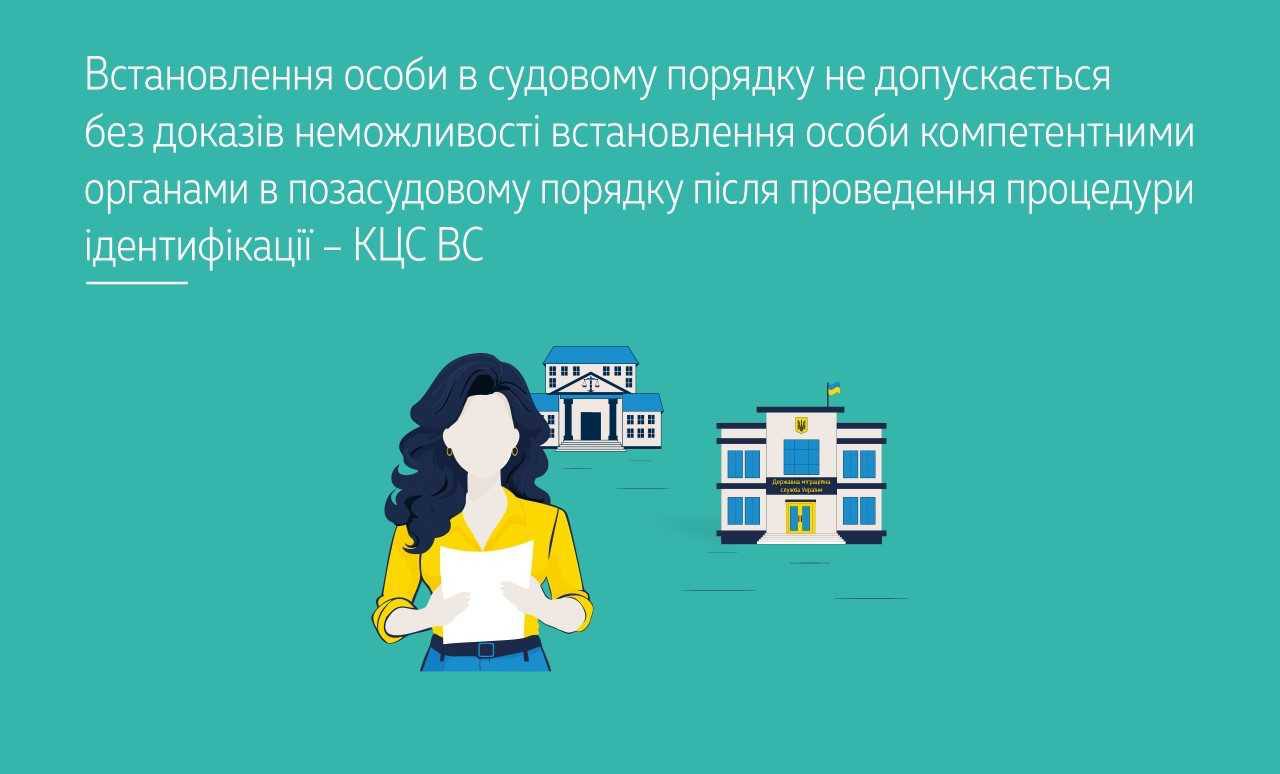 🔹КЦС ВС: встановлення особи в судовому порядку не допускається без доказів неможливості встановлення особи компетентними органами в позасудовому порядку після проведення процедури ідентифікації